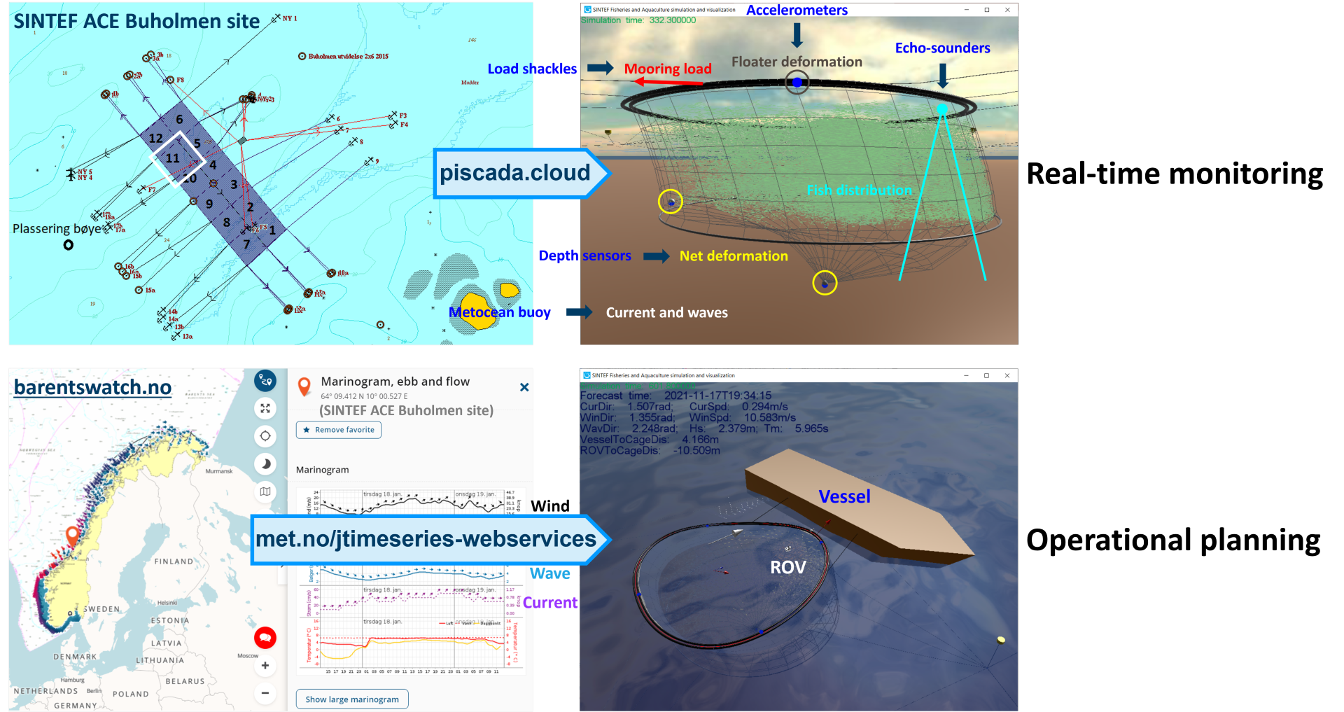 Simulating a fish farm in real time, syncronised with the real farm using measurements.