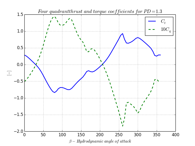 [1] Volker Bertram, "Practical Ship Hydrodynamics", Butterworth and Heinemann, Oxford 2000 [2] Ralf Bachmayer, Louis L. Whitcomb and Mark A. Grosenbaugh, "An Accurate Four-Quadrant Nonlinear Dynamical Model for Marine Thrusters: Theory and Experimental Validation", IEEE Journal of Oceanic Engineering, Vol. 25, No. 1, January 2000
