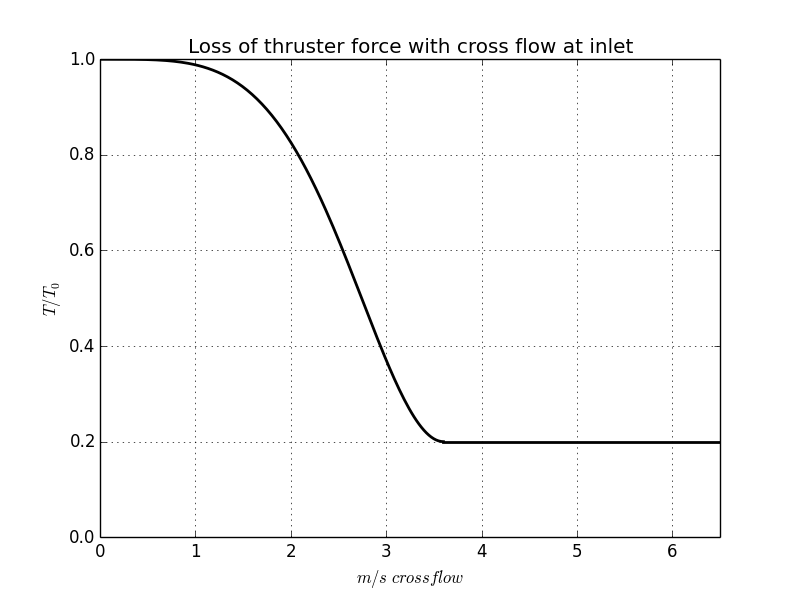 Loss of propeller/thruster force due to cross flow at inlet